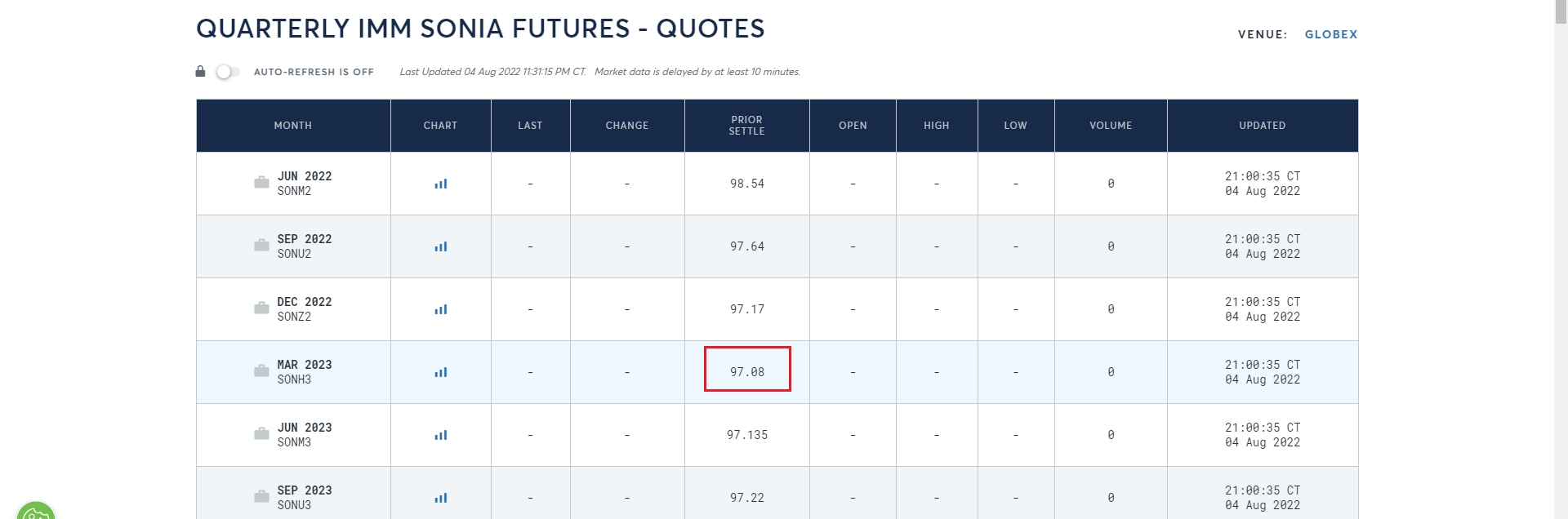 Here we meet a new jargon, market-implied expectation for bank rate. From my perspective this is no other than rate derived from real financial markets. To illustrate, I took a screenshot of Quarterly IMM SONIA Futures, which is a financial instrument trading on (100-future bank rate). As I framed, 97.08 reflects 2.92% bank rate expected in March 2023, consistent with the quoted information above ("just under 3%").