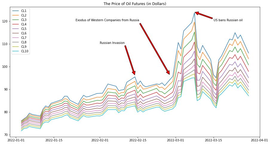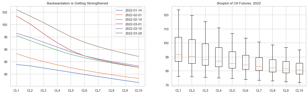 The most recent backwardation is getting strengthened by Russian invasion. With the escalation of Ukraine Crisis, the spot price (CL1) of crude oil drastically surged, leaving higher volatility. Compared with spot, longer-dated futures (CL2-CL10) are trading much lower because traders don’t expect these panicked dynamics to last. They believe that either the oil export sanction on Russia will end, or the market will find a way around the issue (Avi, 2022).