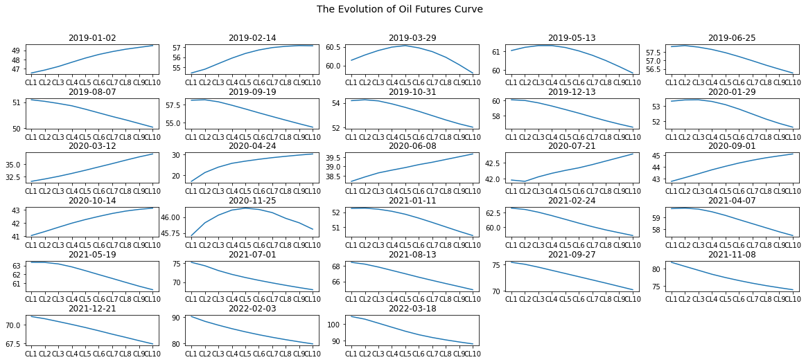The shape of oil futures curve has been evolving from contango to backwardation twice in the past 3 years. Before COVID-19 started raging, oil futures curve turned from contango to backwardation because previous surplus in oil inventories was gradually digested. In the following 2020 when COVID suppressed the oil demand from production activities, the curve then reversed to contango again. Finally the most recent backwardation came as post-COVID era released great demand for the recovery of economy. How do the price of spot and futures with different maturities respond to new changes? And how they differ themselves from the others?