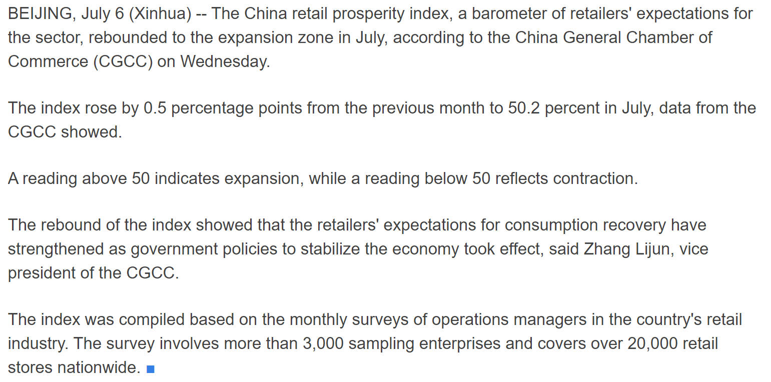 “China Retail Prosperity Index Rebounds in July.” News.Cn, https://english.news.cn/20220706/7ad37f8ba14247758c9b2b9f00c42525/c.html. ↩︎