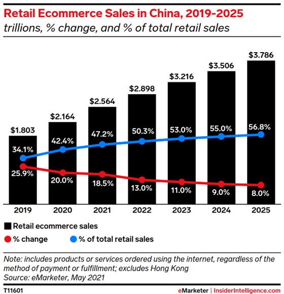 Cramer-Flood, Ethan. “China Ecommerce Forecast 2021.” Insider Intelligence, 9 July 2021, https://www.emarketer.com/content/china-ecommerce-forecast-2021. ↩︎