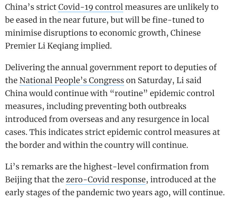 Pinghui, Zhuang. “China to Stick with Zero-Covid Policy, but the Rules May Be ‘Refined’, Premier Says.” South China Morning Post, 5 Mar. 2022, https://www.scmp.com/news/china/politics/article/3169390/china-stick-zero-covid-policy-rules-may-be-refined-premier-says. ↩︎