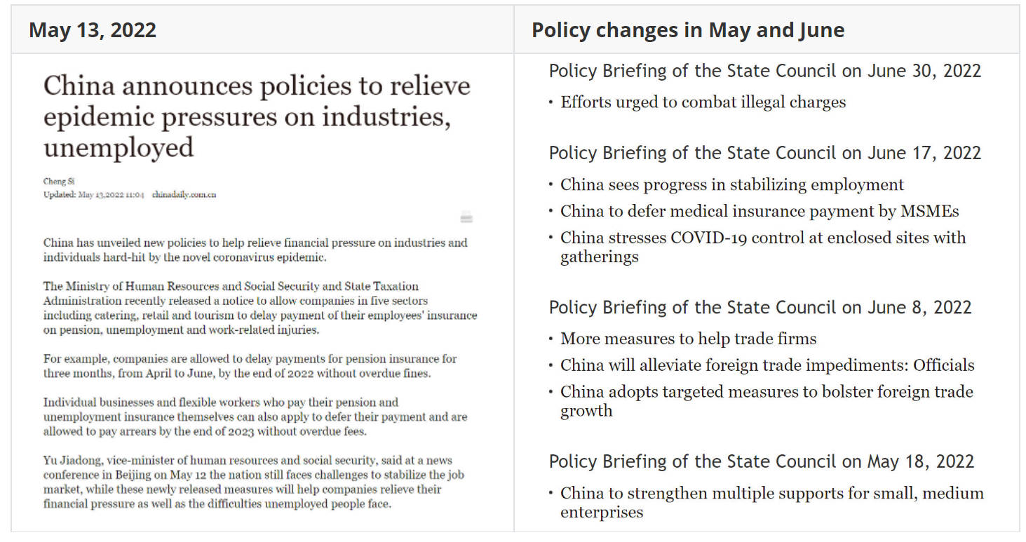 “China Announces Policies to Relieve Epidemic Pressures on Industries, Unemployed.” Gov.Cn, https://english.www.gov.cn/news/pressbriefings/202205/13/content_WS627dcad0c6d02e533532aa55.html. ↩︎